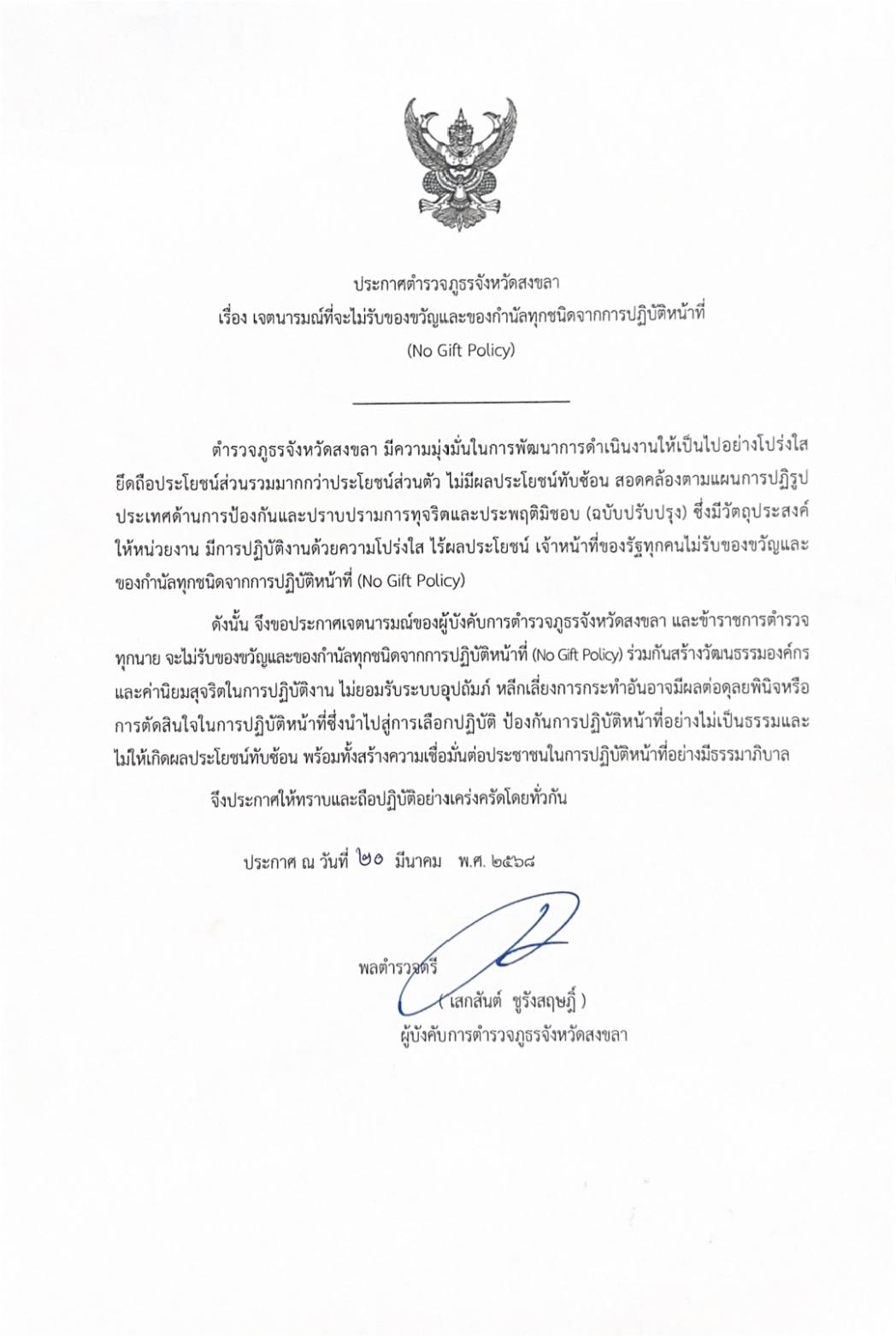 วันที่ 19 ก.ย.68 เวลา 14.30 น. พล.ต.ต.เสกสันต์ ชูรังสฤษฎิ์ ผบก.ภ.จว.สงขลา นายโชตินรินทร์ เกิดสม ผวจ.